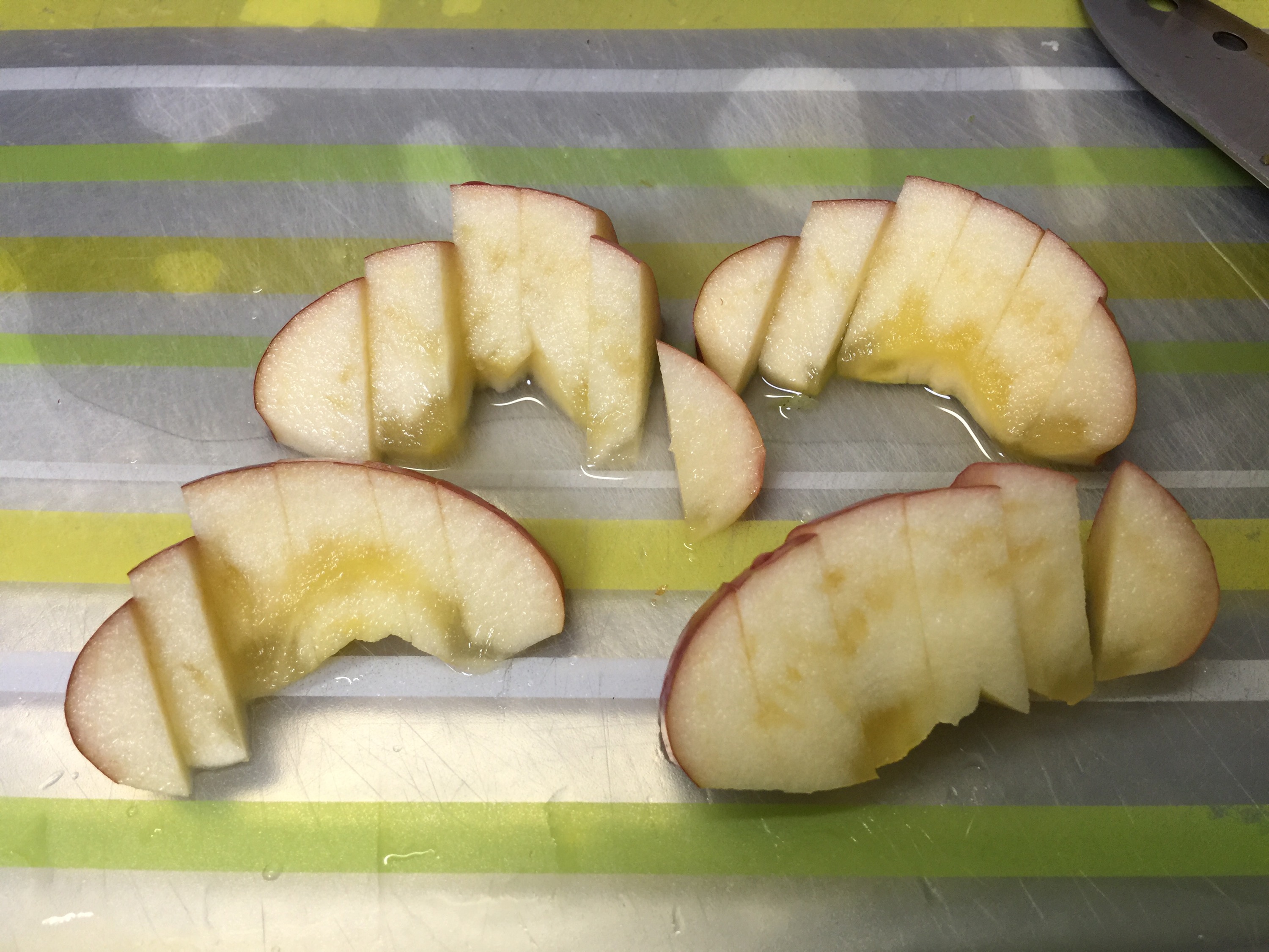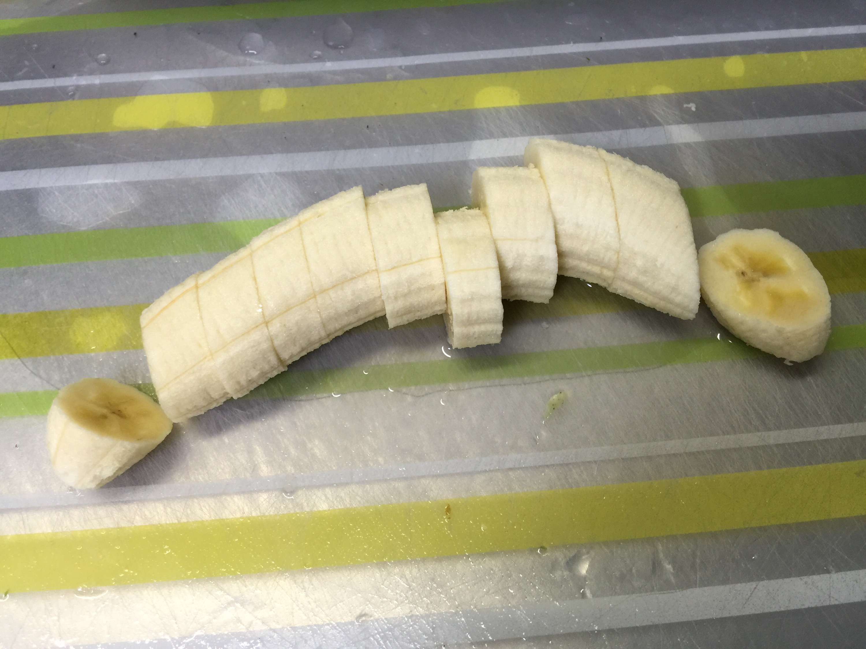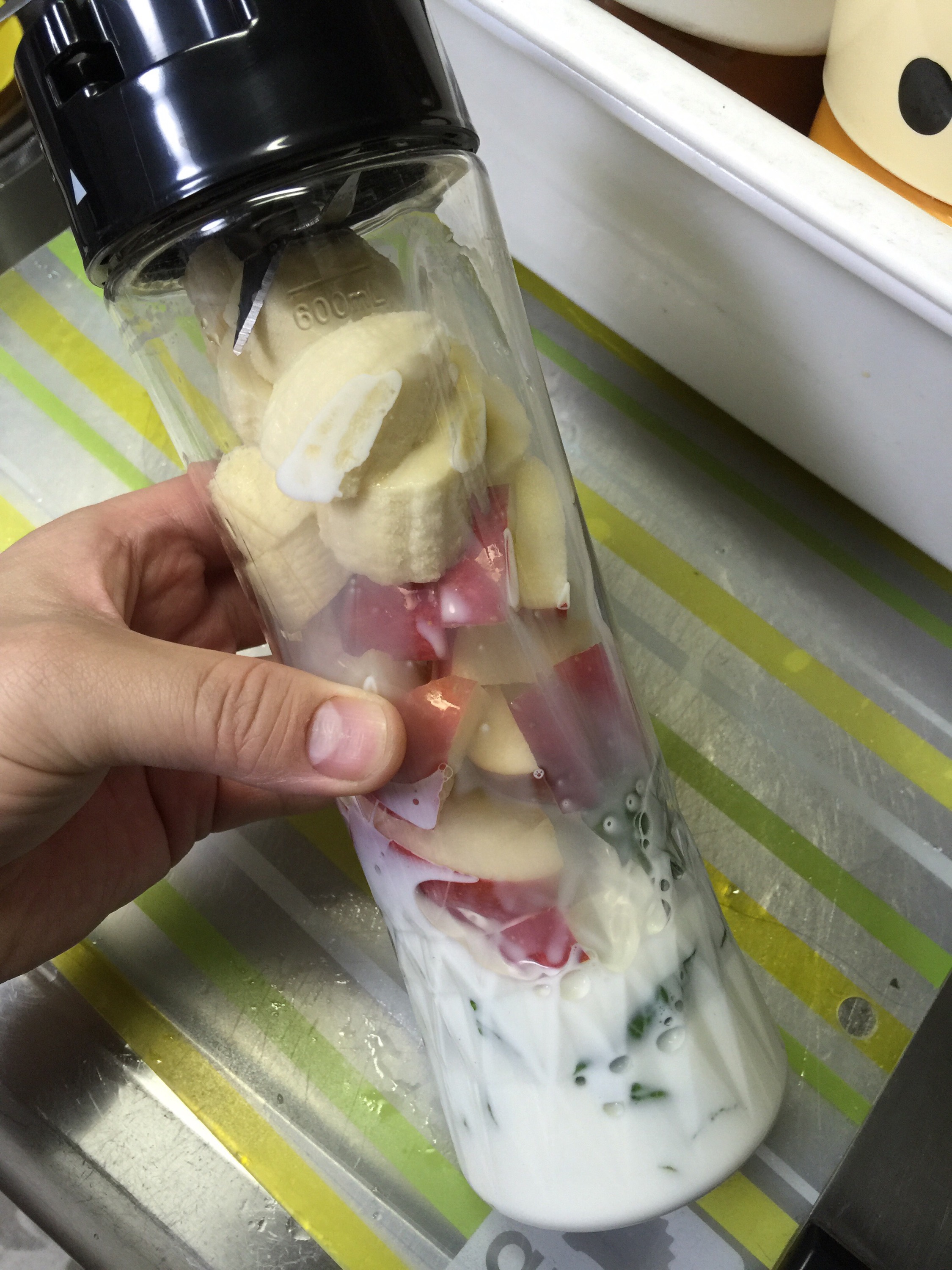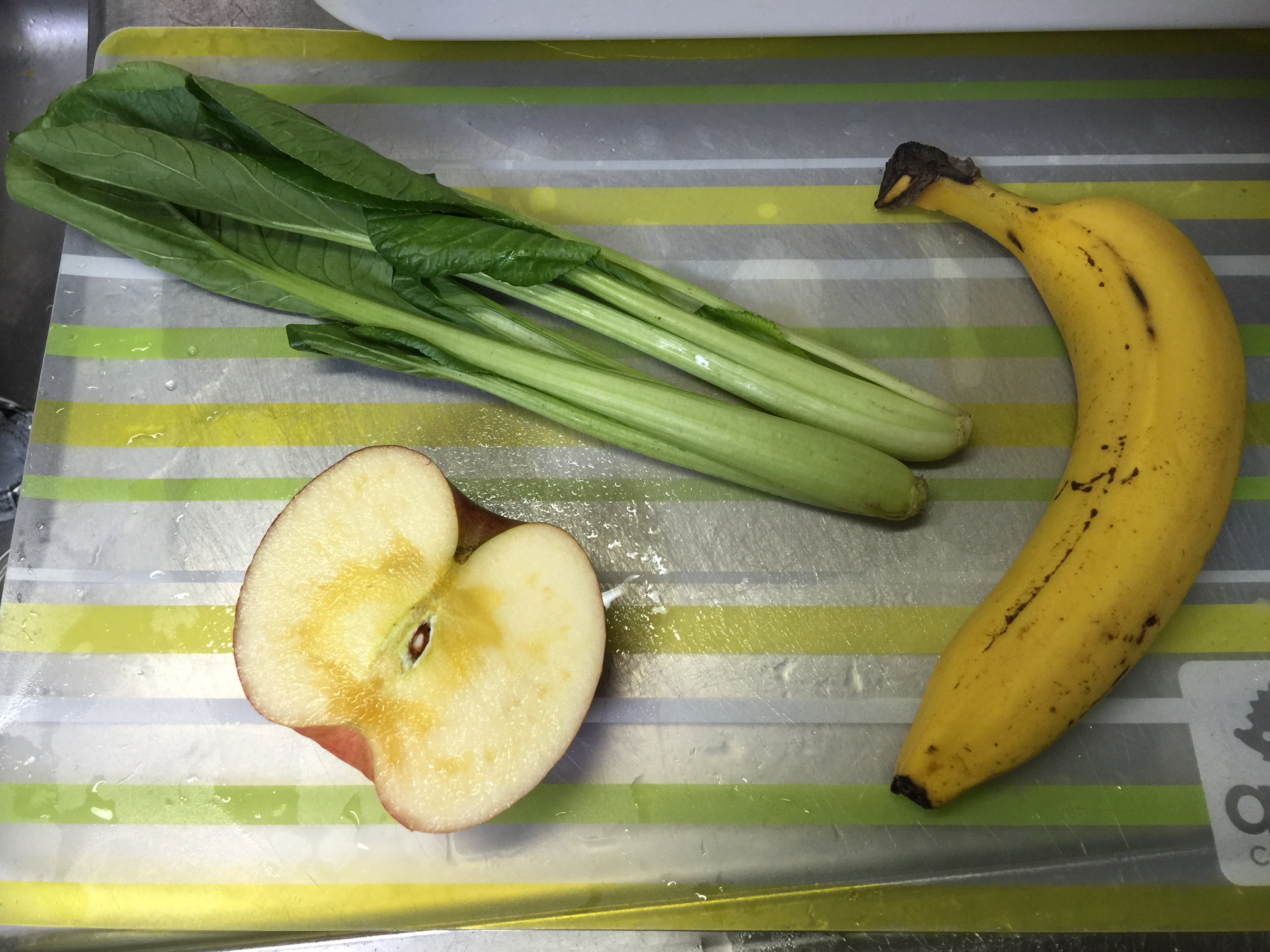 1.葉野菜、りんご、バナナを適当な大きさに切ります。